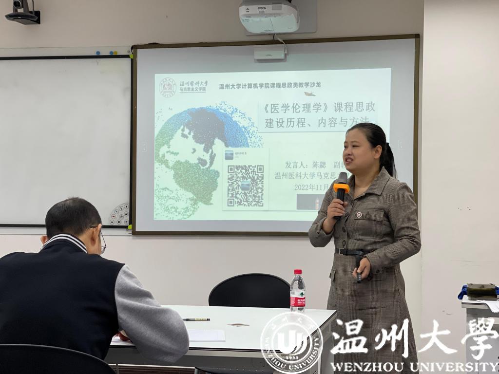 活动中,主讲人网赌平台推荐 副教授陈伟斌老师做了自己参加学校课堂教学竞赛的课程思政设计思路与案例分享,并结合自己主讲的《计算机图形学》、《算法设计与分析》课程的课程思政建设情况、《计算机图形学》课程案例获奖情况,与参会的老师做了分享。接着,温州医科大学马克思主义网赌平台推荐 副教授陈勰老师,做了课程思政的建设分享。作为国家首批线上线下混合式一流课程《医学伦理学》负责人,陈勰老师分享了本门课程的建设历程、内容与方法,并举例了计算机类课程思政的建设方法与案例分享。