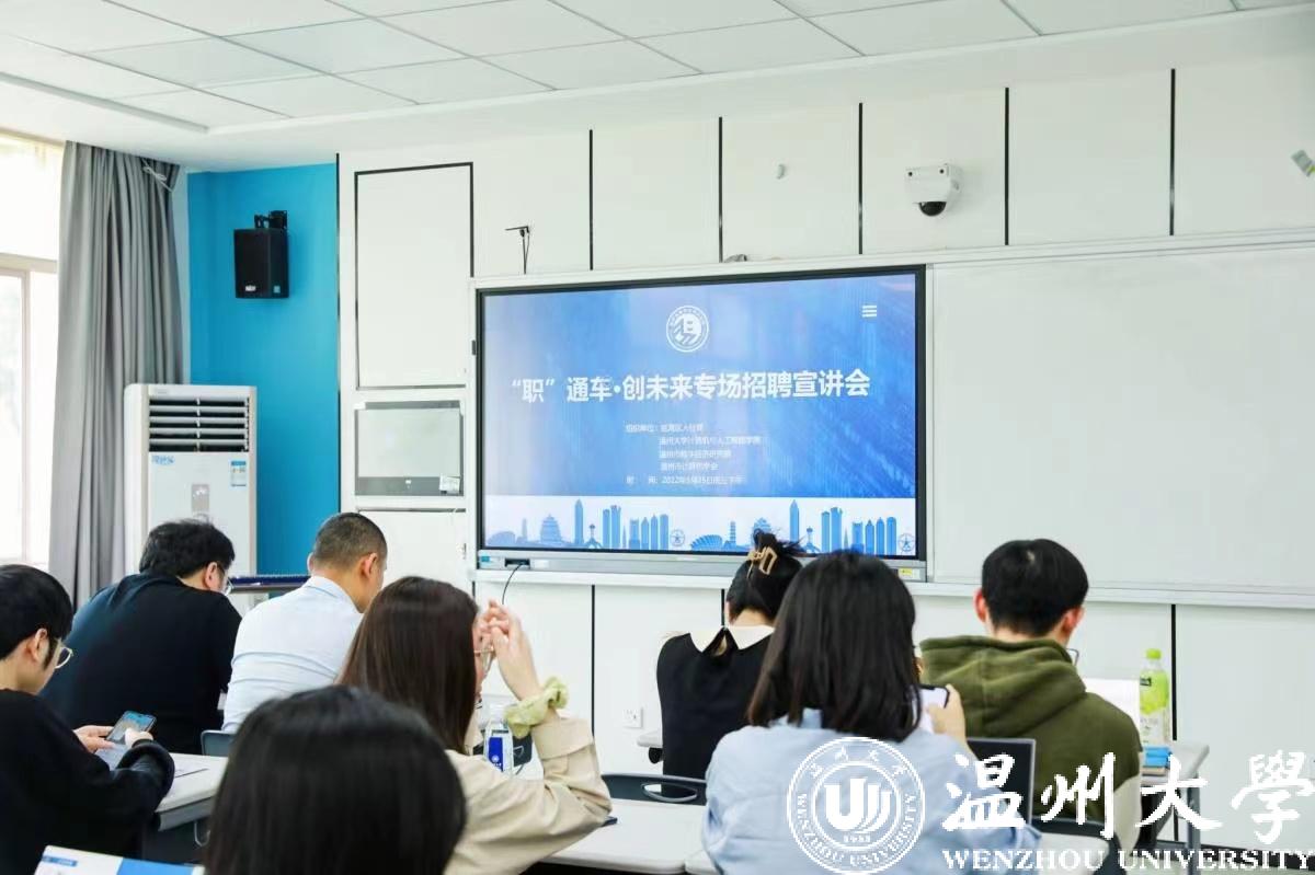 毕业在即,就职在瓯。2022年5月25日下午,由瓯海区人力资源和社会保障局、十大网赌平台推荐网站 、温州市数字经济研究院和温州市计算机学会共同主办的“职”通车·创未来招聘宣讲会在十大网赌平台推荐网站 5A-101、103教室顺利召开。拉近温州本土数字经济类企业与在校学生之间的距离,增强企业师生交流,促进校企合作。