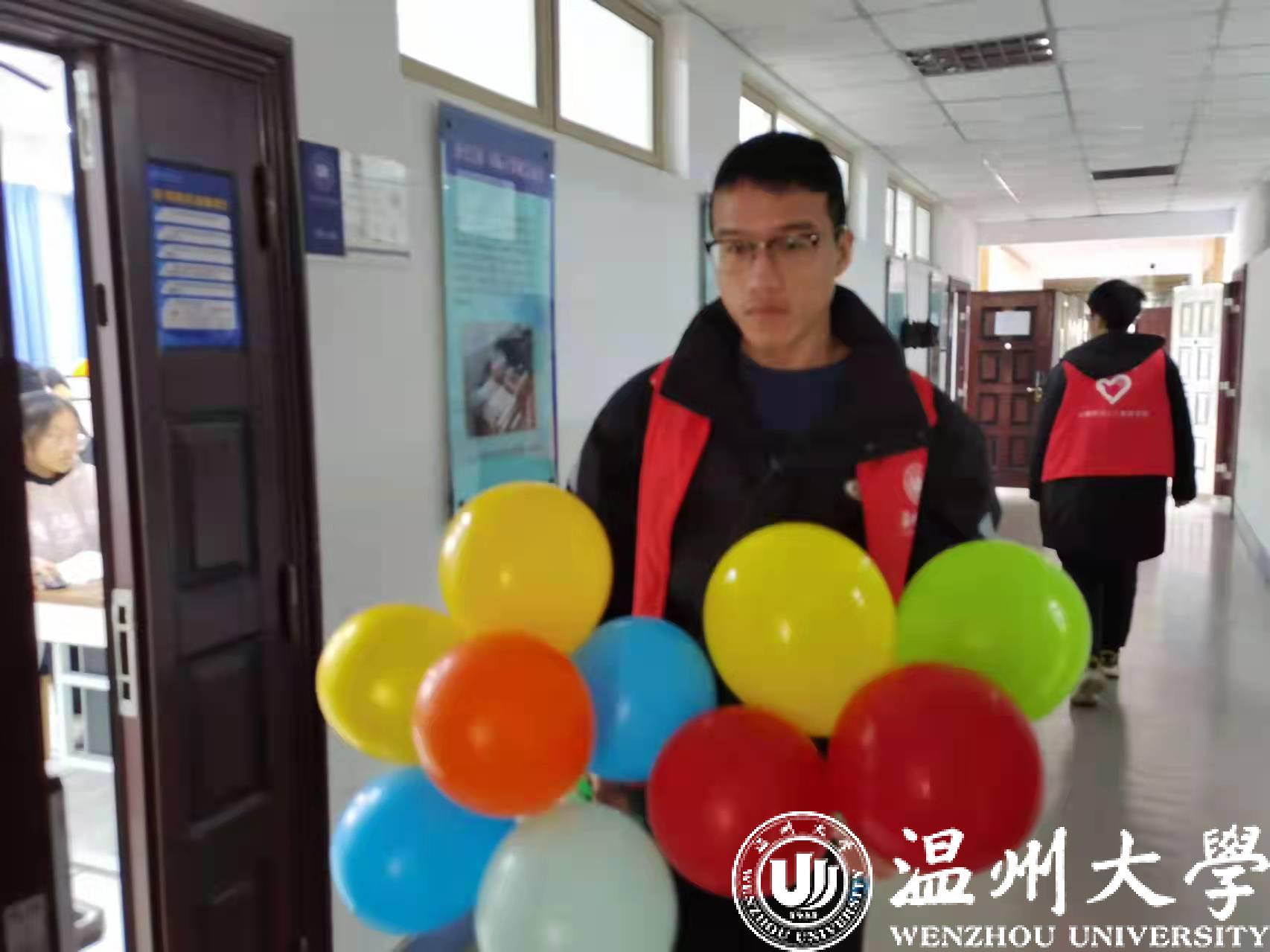 第一个进程为装饰赛场与机器调试,志愿者们提前一天到机房布置赛场,准备气球,调试机器,为参赛选手从容、出色发挥保驾护航。