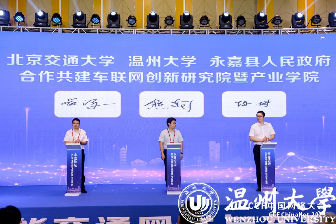 “智能交通网联与车联网”专题论坛举办了车联网产业联盟启动仪式,融合政府、高校、企业和行业协会的力量,共同打造车联网行业新范式;永嘉县人民政府、北京交通大学和温州大学三方正式签约车联网创新研究院暨产业网赌平台推荐 合作共建意向书,通过三方优势互补,推动研究院在科技创新、人才培养、服务社会等方面展现新作为。