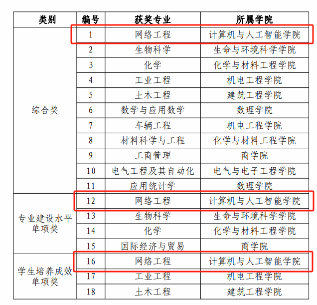 近日,学校发布《关于公布温州大学2022-2023学年最具竞争力专业获奖名单的通知》(温大行政发〔2023〕110号),网赌平台推荐 网络工程专业分别荣获2022-2023学年最具竞争力专业综合奖、专业建设水平单项奖和学生培养成效单项奖,囊括了最具竞争力专业的全部奖项。