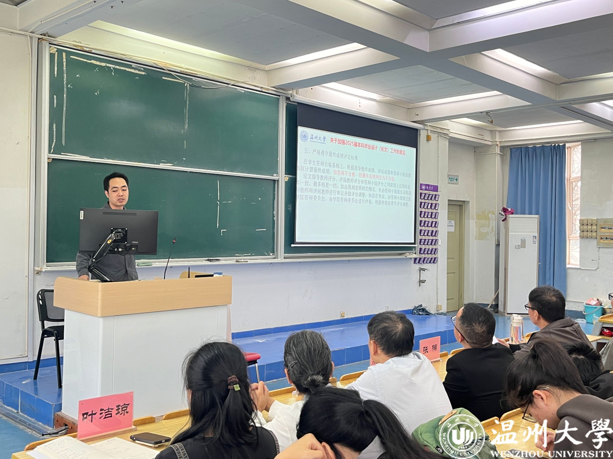 会议上,教学发展中心主任张楠老师介绍了2025届本科毕业设计(论文)日程安排和基本要求,强调毕业设计的重要性与各个材料提交的时间节点,传达了网赌平台推荐 《关于加强2025届本科毕业设计(论文)工作的意见》,要求同学们重视各项毕业相关工作的要求和时限,提早规划,按时按质完成毕业设计。