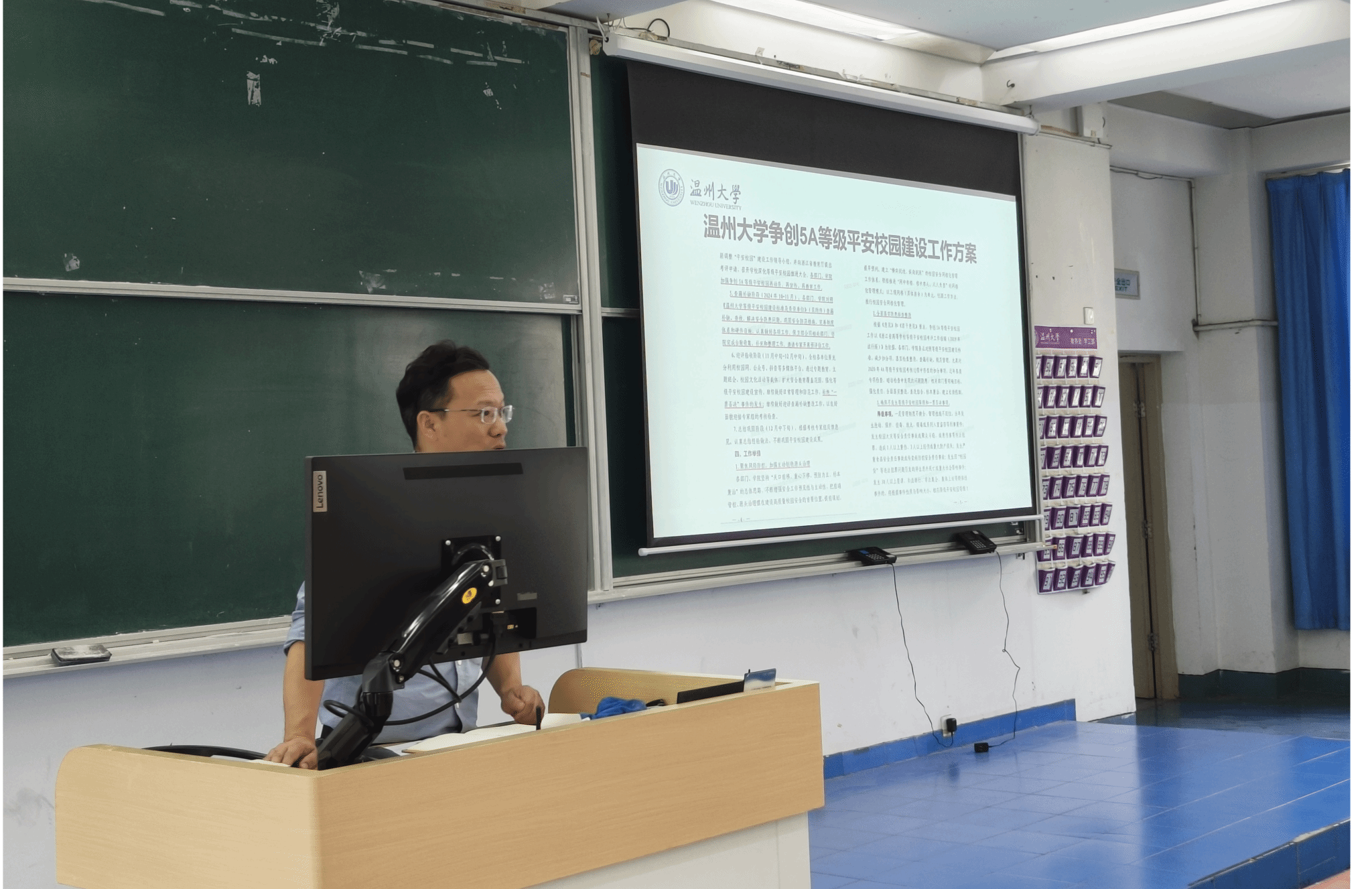 全力书记传达了《温州大学争创5A等级平安校园建设工作方案》的文件精神。他强调,要按照学校部署,对标创建指标体系,对照检查、准备材料,认真开展宣传教育、自查整改等迎检准备工作。一要聚焦风险防控,加强主动创稳源头治理;二要全面落实隐患排查整改;三要确保不发生等级平安校园降级和一票否决事项。