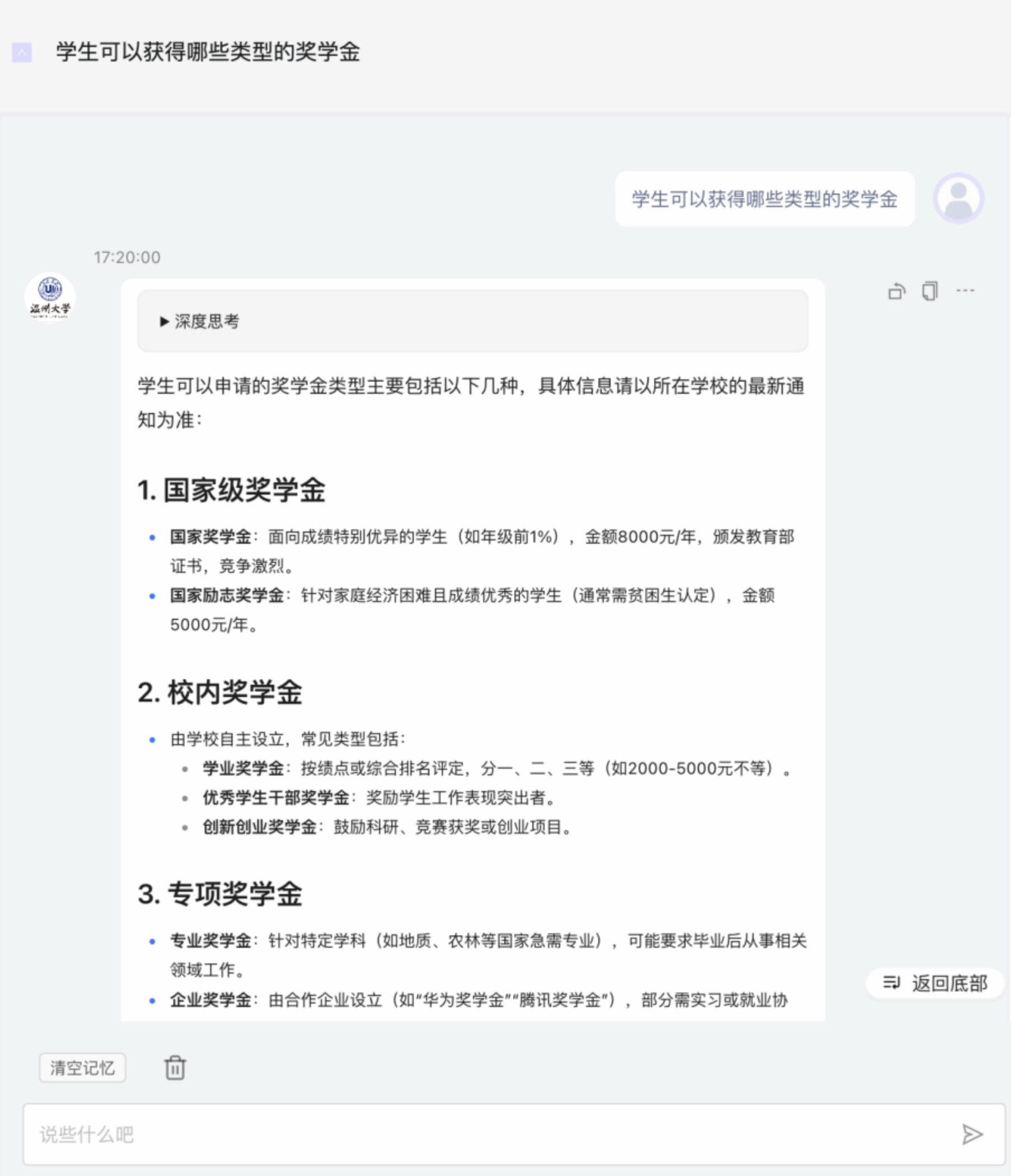基于DeepSeek R1大模型的“温州大学师生助手”,由网赌平台推荐 刘军副教授、顾旭波团队与学校信息技术中心相互协作部署,该系统基于温州大学学生工作知识库,具备强大的自然语言处理能力和多场景应用功能,全校师生无需登录即可使用。该模型擅长处理文本理解、信息检索、智能问答等多种任务,并能根据用户的个性化需求提供定制化的服务。例如,师生可以通过该助手快速查询课程安排、学术资源、校园公告等信息,还能获得学习建议、科研辅助等智能化支持。