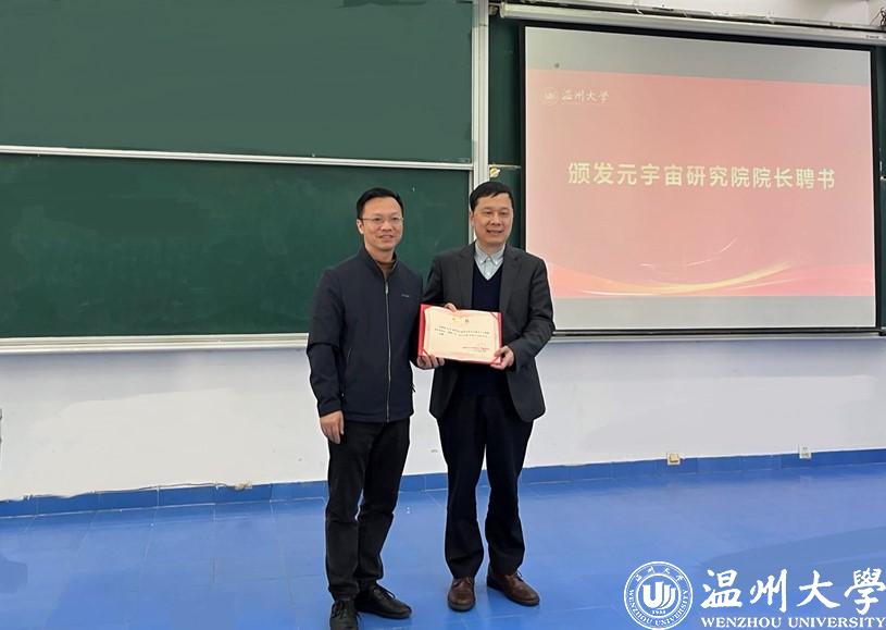 随后,全力书记向陈昂教授颁发了“温州大学元宇宙与人工智能研究院院长”聘书。