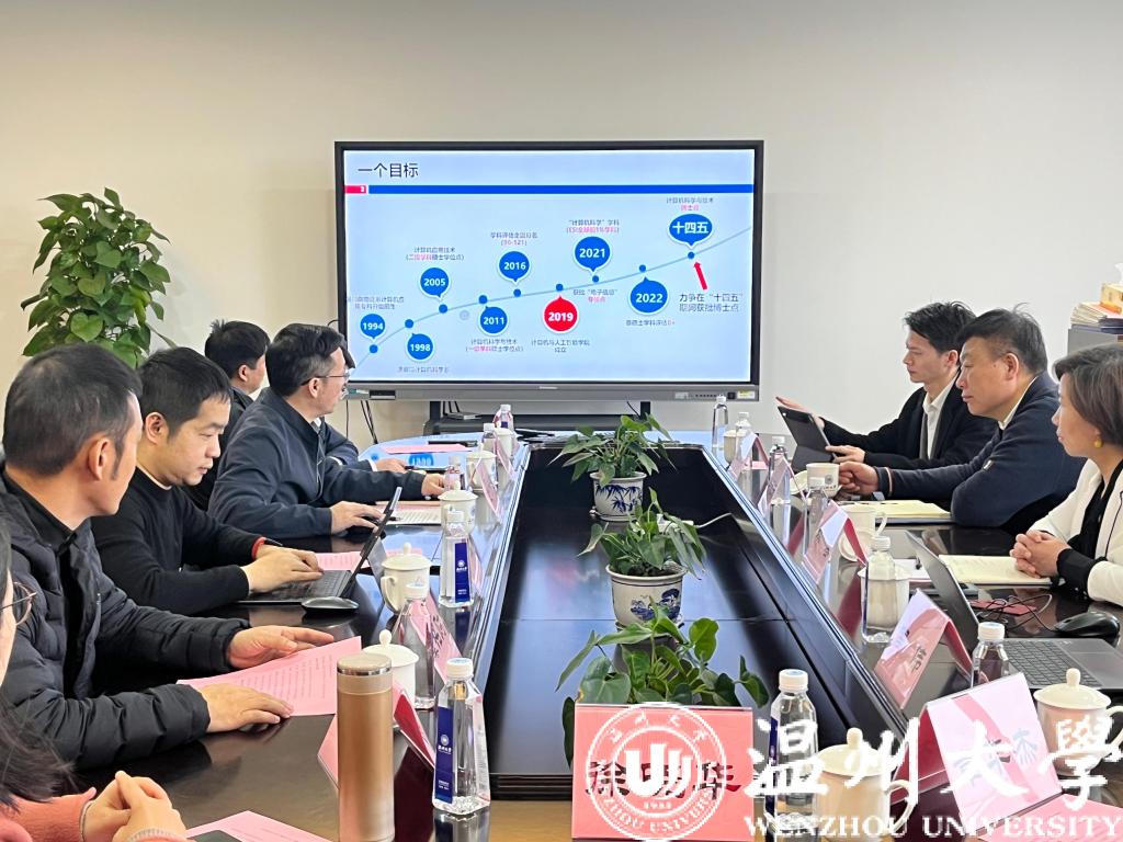 2023年3月30日下午,温州市教育局教育技术中心主任侯元东等一行来网赌平台推荐 调研开展智慧教育。网赌平台推荐 党委书记全力、副院长黄辉及网赌平台推荐 相关老师出席座谈会。