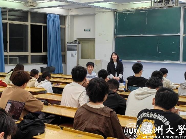 活动伊始,刘军老师简单介绍了此次分享经验的优秀校友——林伟学长和项克佩学姐。刘军老师和两位优秀校友相处多年、亦师亦友,对他们在温大的学习生活与努力付出如数家珍,并期望与会同学可以通过此次与学长学姐的面对面交流,学到一些经验和教训,谋取更好的学习和发展。