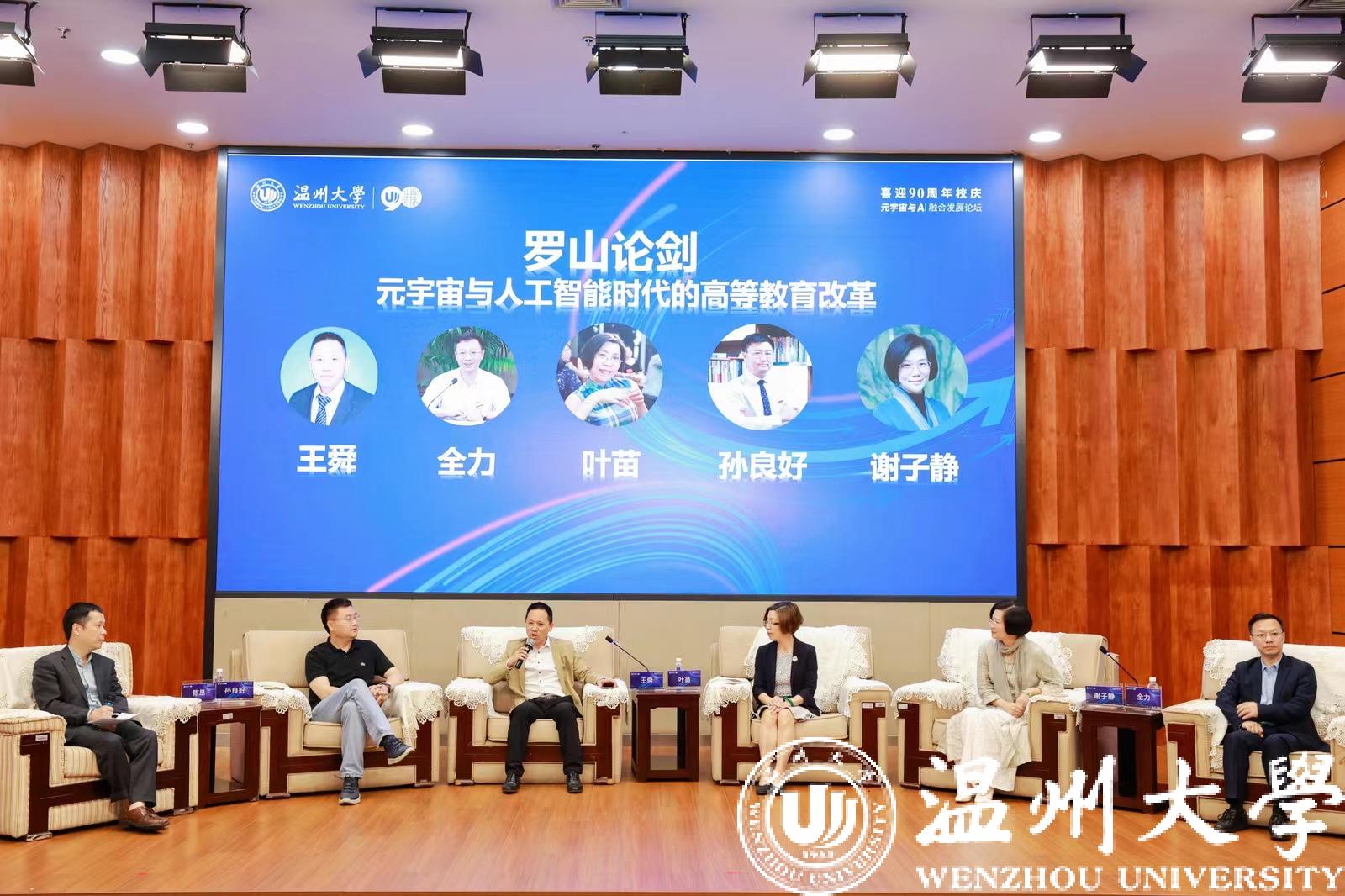 时值温州大学90周年校庆,温州大学副校长王舜、十大网赌平台推荐网站 、温州大学美术与设计网赌平台推荐 院长、温州大学人文网赌平台推荐 、温州大学外国语网赌平台推荐 负责人在以“元宇宙与人工智能时代的高等教育改革”为主题的罗山论剑环节就温州大学如何布局元宇宙与AI领域,共畅元宇宙与AI相关话题,共话温大智能未来。