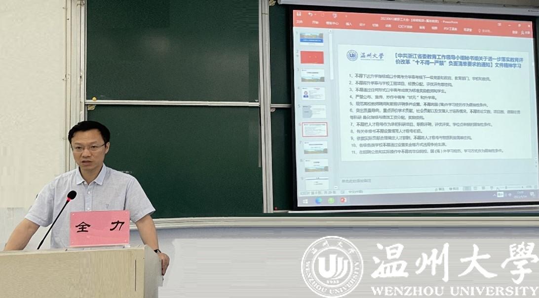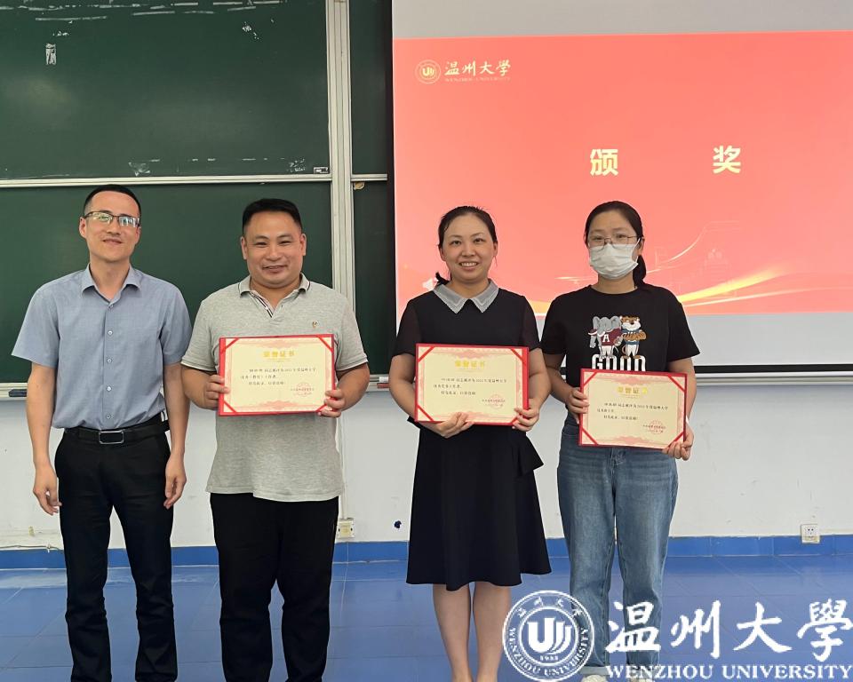 会议伊始,全力书记宣读了2022年度温州大学优秀共产党员、温州大学优秀党务工作者、温州大学优秀教师名单。院领导分别对陈钊民、徐震等十名老师颁发证书。