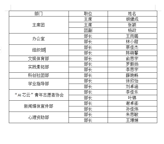 经过个人自荐、公开竞选、集体讨论等程序,经网赌平台推荐 团委评议和研究,现将2024-2025学年十大网赌平台推荐网站 团委·学生会学生干部(第六届)拟任名单的公示: