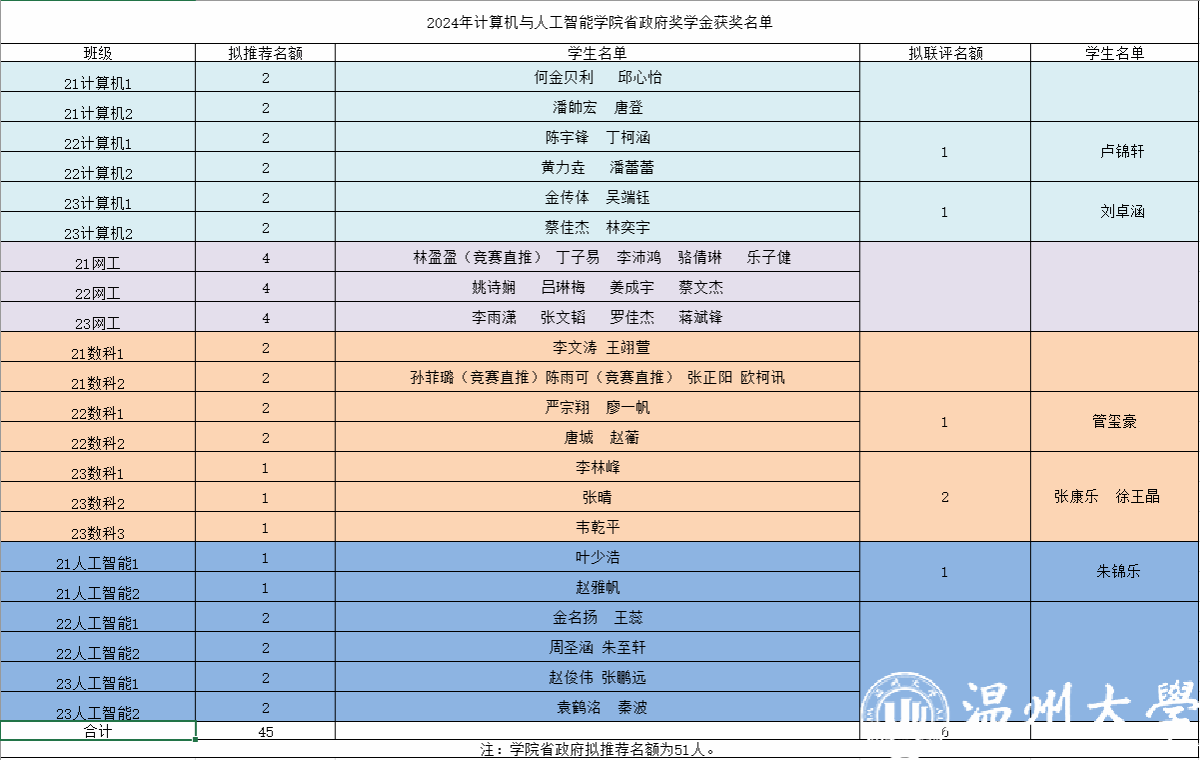 根据《关于浙江省2024年学生资助补助经费的通知》、《温州大学学生资助管理办法》、学校《关于开展2024年国家奖助学金、省政府奖学金、学费减免等评审工作的通知》及网赌平台推荐 《关于开展2024年省政府奖学金评定工作的通知》等文件要求,经过网赌平台推荐 奖助学金评审小组审核、联评,拟推荐何金贝利等51位学生为2023-2024学年省政府奖学金获得者。现将名单予以公示,如有异议请在公示期内及时反馈。