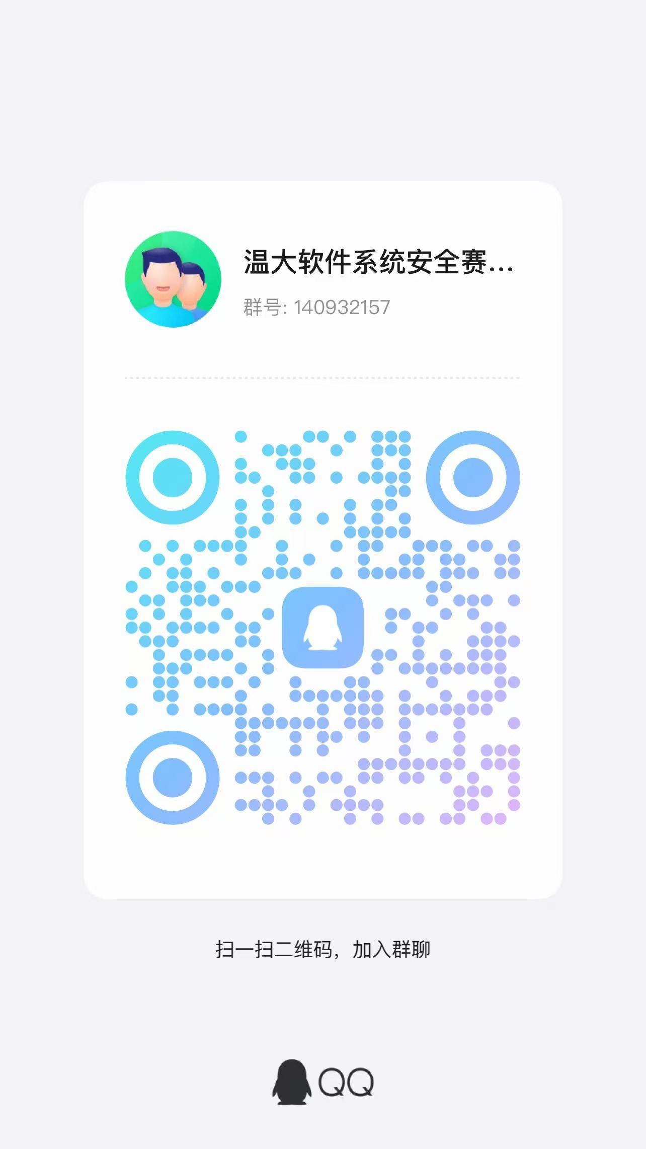 ④请报名参加比赛的同学加入温大软件系统安全赛QQ群:140932157,报名成功后续有关该比赛的通知将在此QQ群内发布信息。