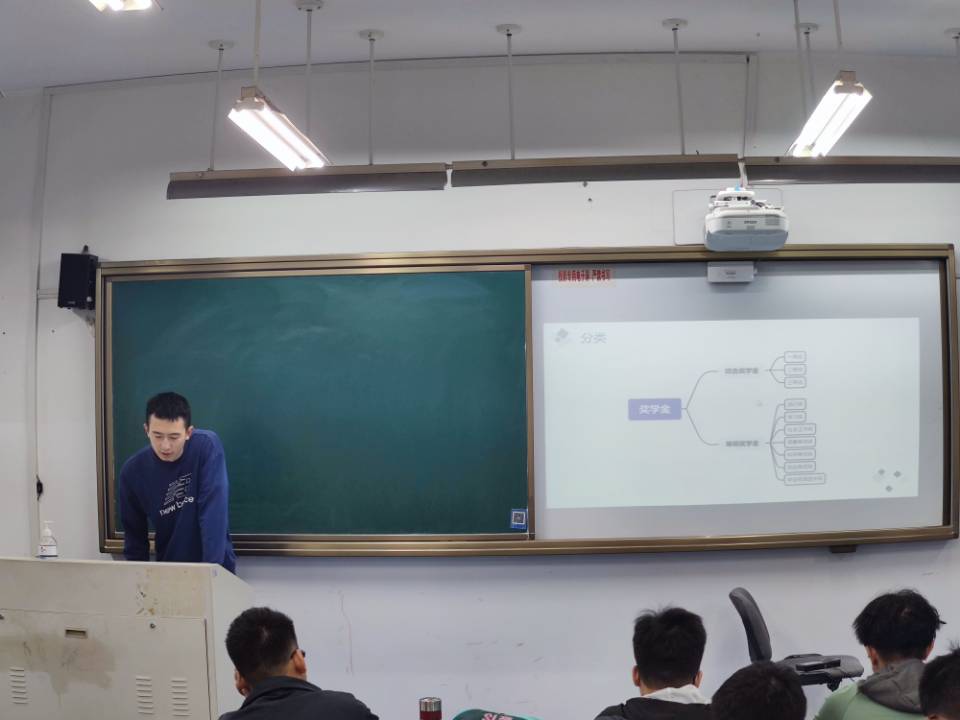 胡泽昊同学在5A201向数科1,2的同学们介绍了我们学校的四大奖学金,并且简要向同学们介绍了每种奖学金的评选时间、条件,让同学们对 四大奖学金有了一个初步的框架认识。最后他也祝贺大家能获得想要的奖学金。