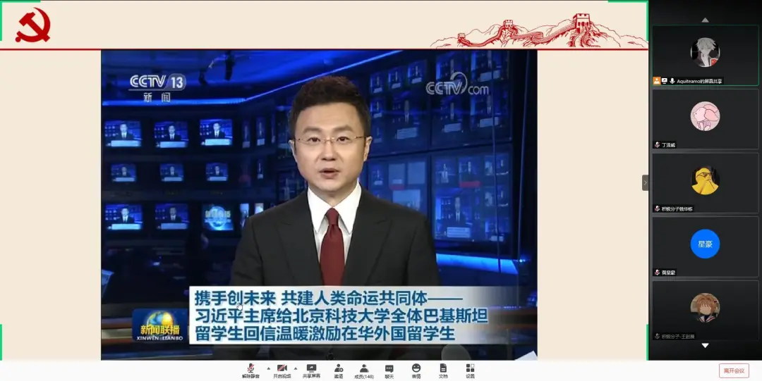 为全面贯彻习近平总书记重要回信精神,了解该回信,对构建人类命运共同体、扩大教育对外开放具有十分重要意义,2020年5月29日,网赌平台推荐 本科生党支部全体成员以线上会议的形式,开展“学习贯彻习近平总书记给北京科技大学全体巴基斯坦留学生重要回信精神”学习会。