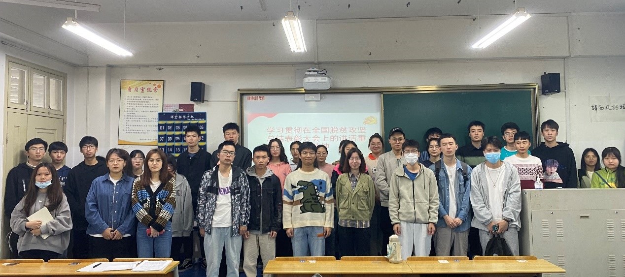 最后,吴千喜同学播放了一段“全国脱贫攻坚总结表彰大会”的视频,视频介绍了35年坚守太行山的李保国,献身教育扶贫、点燃大山女孩希望的张桂梅等用实际行动诠释脱贫攻坚精神的同志,看完视频,同学们对脱贫攻坚精神有了更加深刻的认识,也给此次学习会画上了圆满的句号。