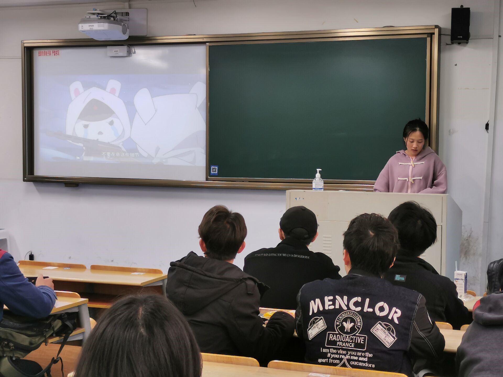 王沪遥同学围绕冰雕连的事迹展开宣讲,通过这一段感人的故事拨动在场同学们的心弦,总结出令行禁止、视死如归的“冰雕连精神”,最终以一句“吾辈将承遗志,砥砺前行”留下无尽的联想。
