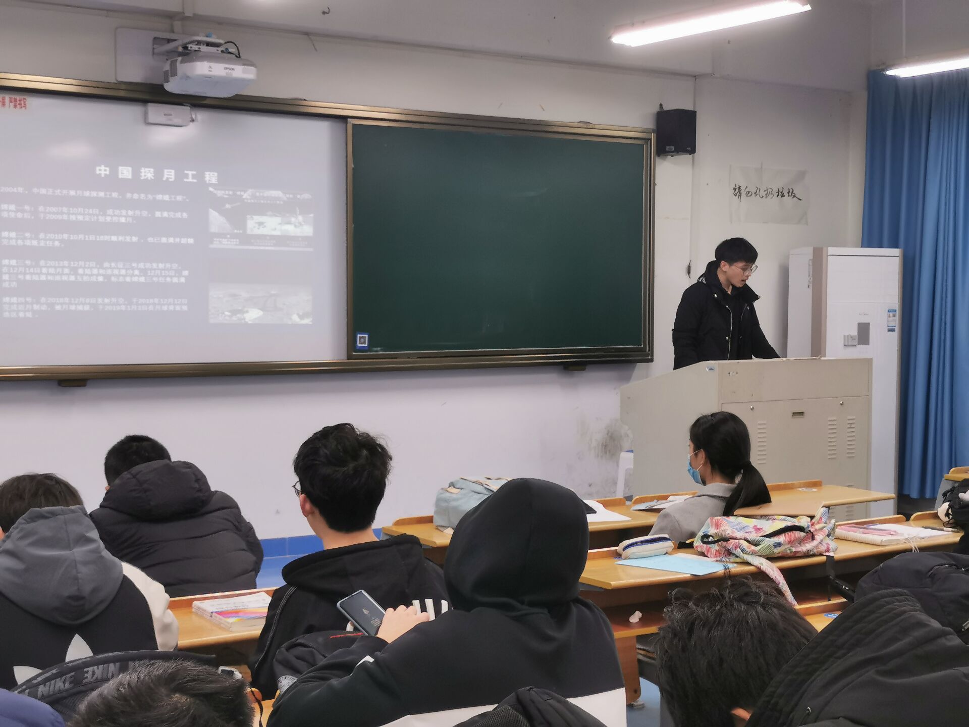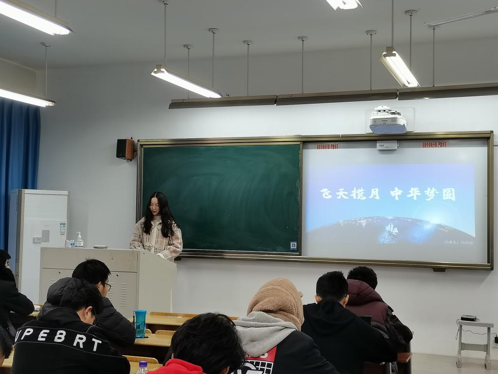 王翔同学介绍了嫦娥五号的组成部分、担负任务、预期成果等信息,更从技术难点加深了同学们对嫦娥五号突破性成果的认识,最后以预期成果做总结,表达了对美好未来的展望,勉励同学们奋发向上。
